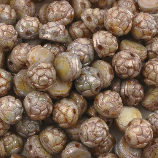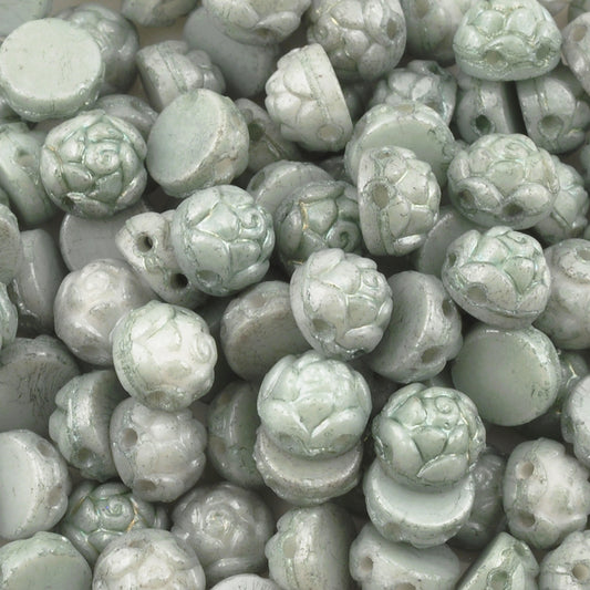 Glass-6mm Rosetta-Cabochon-Two Hole-Chalk White Teal Luster-Czech-Quantity 10