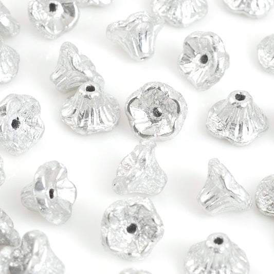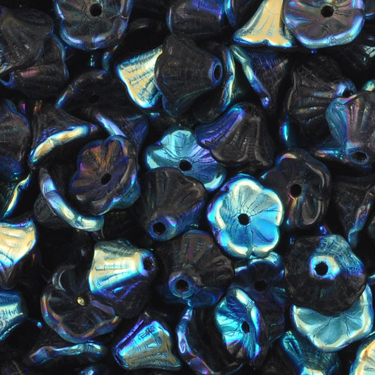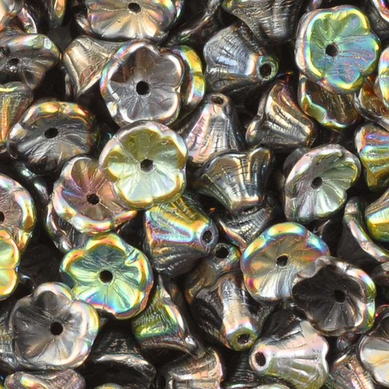 Glass-7x5mm Flower Cup Bead-Jet Full AB-Czech-Quantity 20