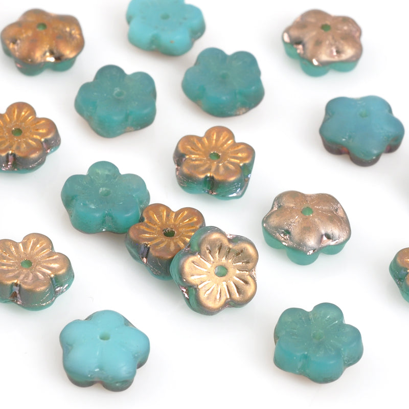 Glass-5mm Flower Cap Bead-Milky Turquoise-Czech-Quantity 20