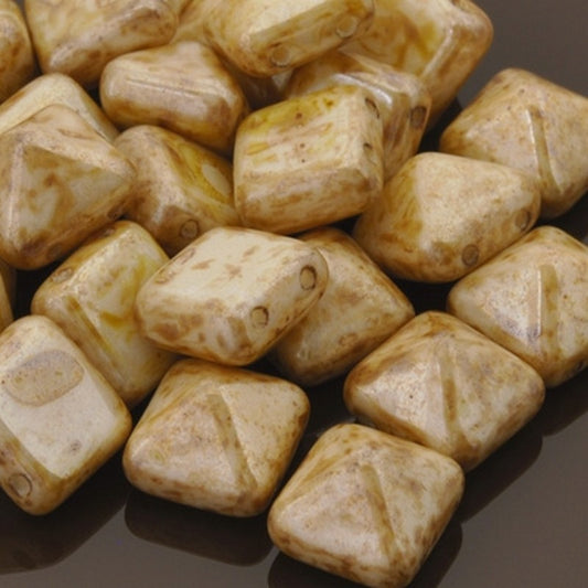 Glass-12mm Pyramid-Opaque White Picasso-Czech-Quantity 12