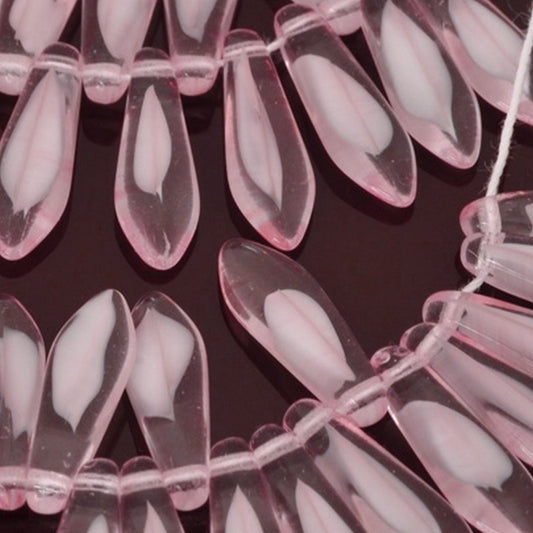 Czech Glass-5x16mm Dagger Bead-Matte Crystal-Light Pink-Czech-Quantity 1