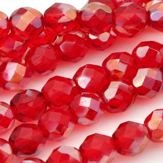 Glass Beads-8mm Fire Polish-Celsian Siam Ruby-Czech-Quantity 1