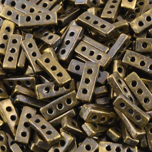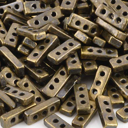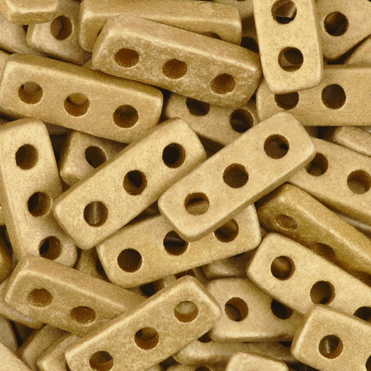 Ceramic Beads-18x7mm Three Hole Multi Strand Spacer-Earthy Metallic Gold-Quantity 1