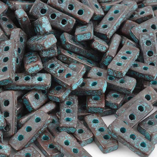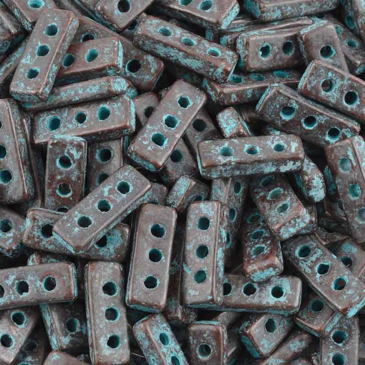 Ceramic Beads-18x7mm Three Hole Multi Strand Spacer-Green Patina-Quantity 1