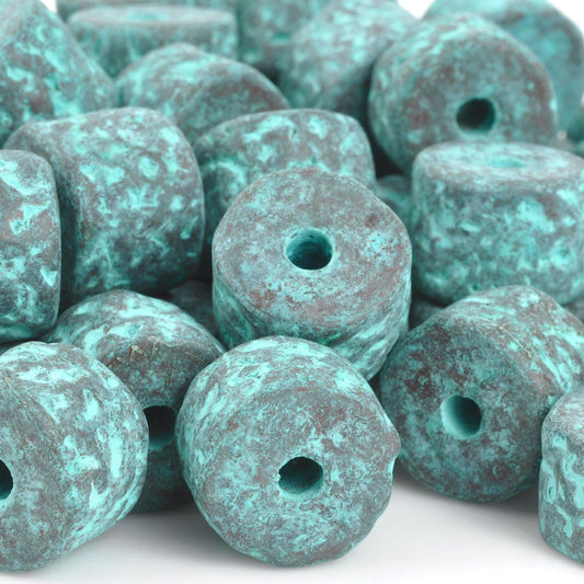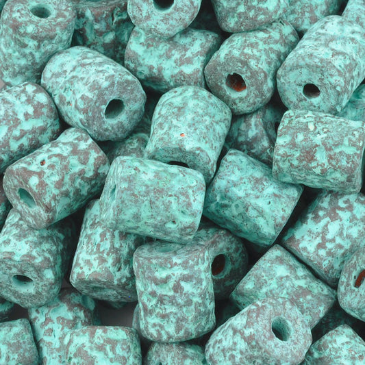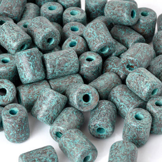 Ceramic Beads-9x8mm Coarse Tube-Green Patina-Quantity 1
