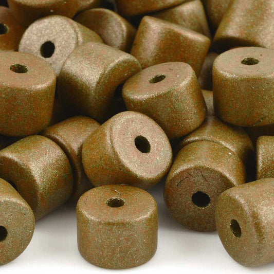 Ceramic Beads-10x13mm Coarse Round Tube-Green Patina-Quantity 1