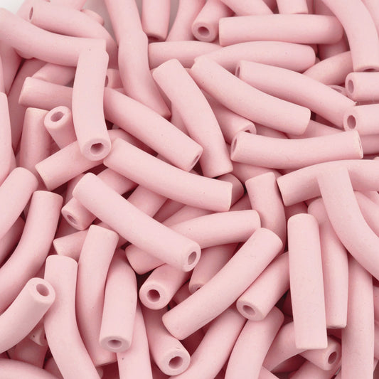 Ceramic Beads-27x6mm Curved Tube-Rose Water-Quantity 1