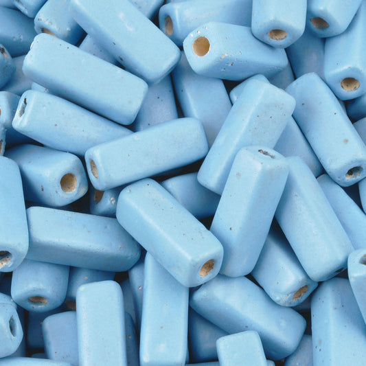 Ceramic Beads-16x6mm Rectangle Tube-Enamel-Arctic Blue Matte-Quantity 1