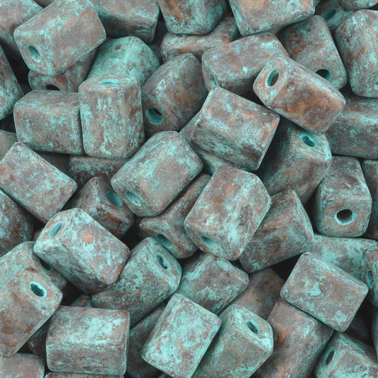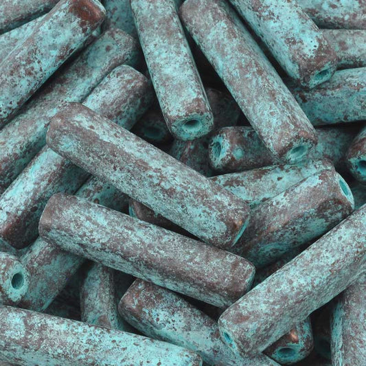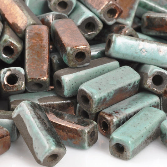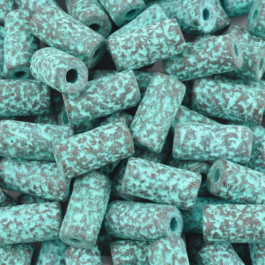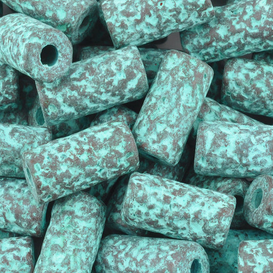 Ceramic Beads-8x5mm Rectangle Tube-Green Patina-Quantity 3