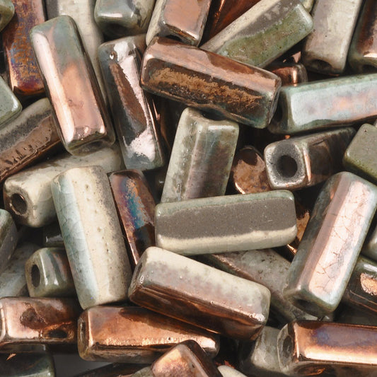 Ceramic Beads-8x10mm Rectangle Tube-Copper Raku-Quantity 1