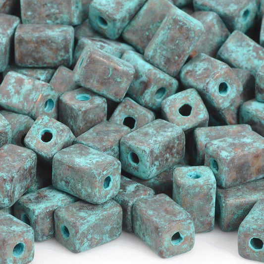 Ceramic Beads-3mm Tube-Green Patina-Quantity 25