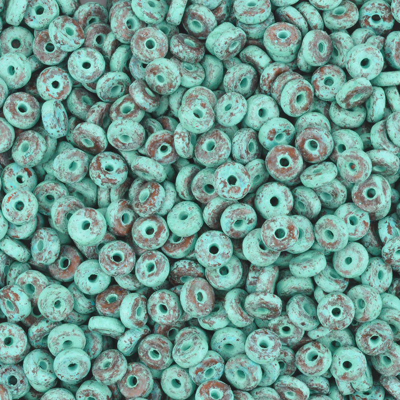 Quality Handmade Ceramic Kiln Fired Terra Cotta Beads Finished With Green Patina. (Patinas Vary)