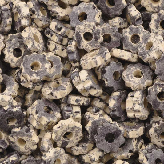 Ceramic Beads-9mm Ridged Disc-Dark Taupe Splash-Quantity 25