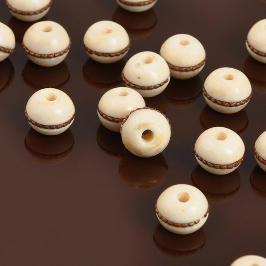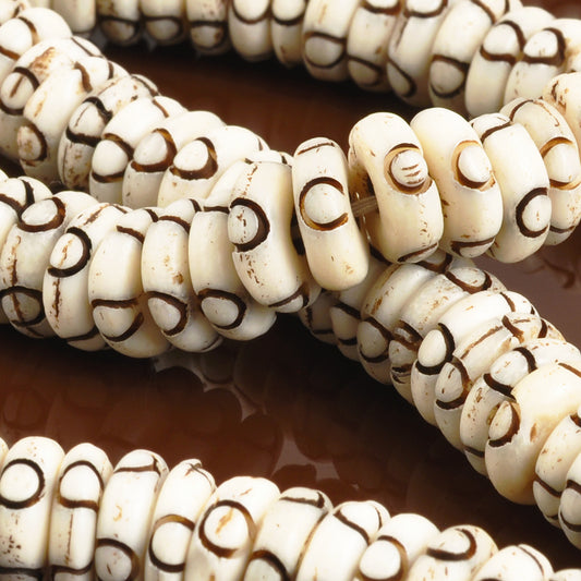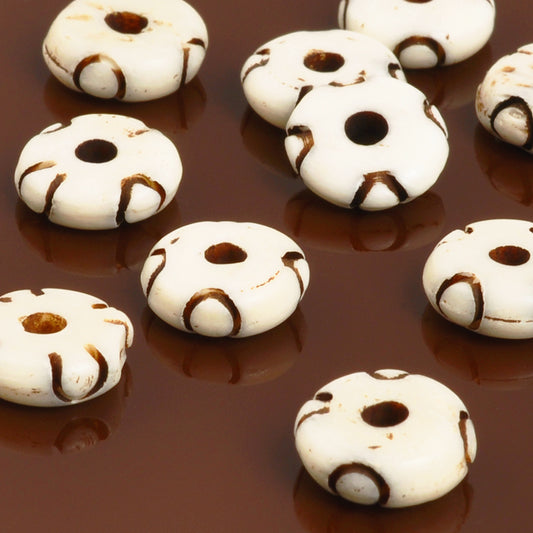 Carved-10mm Rondelle Bead-Off White With Black Rings-2mm Large Hole-Quantity 1