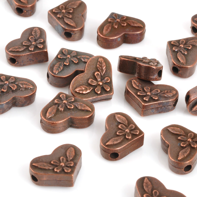 Brass Beads-13mm Flat Heart-Bronze-Quantity 1