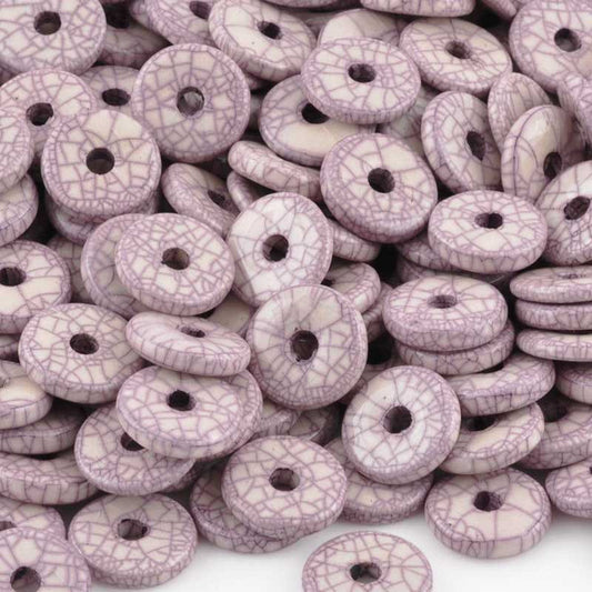 Ceramic Beads-13mm Round Disc-Antique Purple-Quantity 2