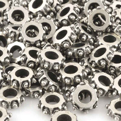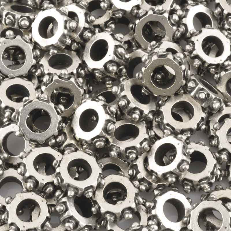 Hand-formed, Casting Beads are Lead-free Base Metal, Silver Plated with a Black Patina.