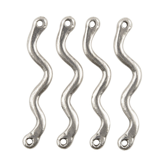Casting-10x35mm Wavy Bar Connector-Antique Silver-Quantity 4