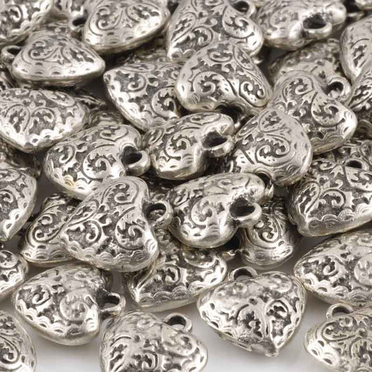 Casting Beads-15mm Hammered Heart-Antique Silver-Quantity 1