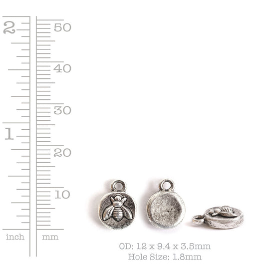 Nunn Design-Pewter-12mm Organic Itsy Bee Charm-Antique Silver-Quantity 1