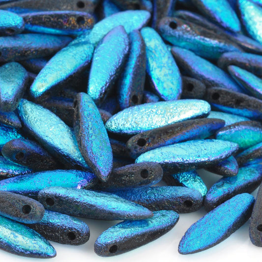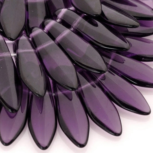 Glass-5x16mm Dagger Bead-2-Hole-Tanzanite-Czech-Quantity 50