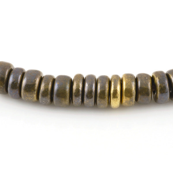 Quality Handmade Ceramic Kiln Fired Terra Cotta Beads, Bronze Plated with a Black Patina. This Spacer Bead Varies in thickness from 3mm to 4mm.