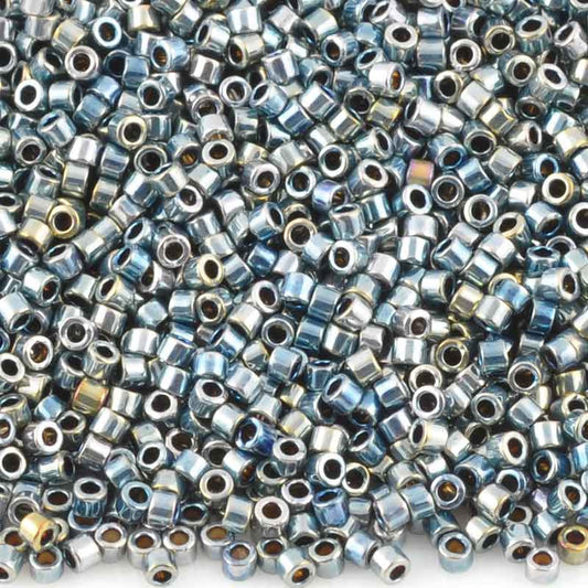 Seed Beads-11/0 Delica-545 Silver Blue Gold Iris-Miyuki-7 Grams