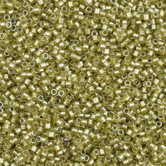 Seed Beads-11/0 Delica-908 Sparkling Beige Lined Chartreuse-Miyuki-7 Grams