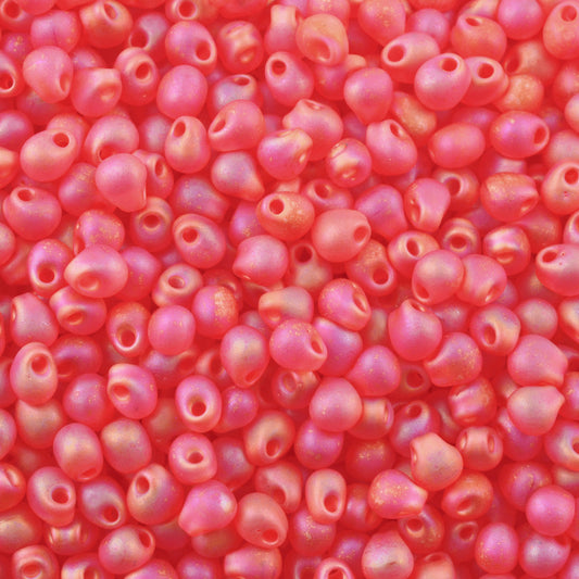 Seed Beads-3.4mm Drop-140FR Matte Transparent Red Orange AB-Miyuki-7 Grams