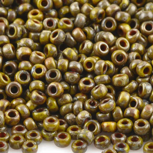 Seed Beads-11/0 Round-4506 Transparent Olivine Picasso-Miyuki-16 Grams