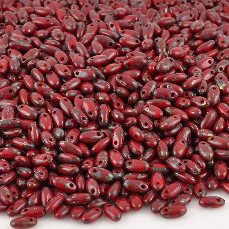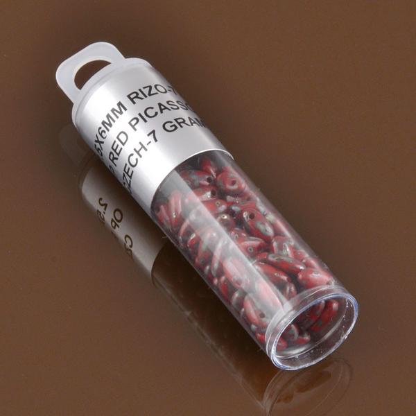 Size: 2.5x6mm Seed Beads Hole Size: 0.8mm Color: Opaque Red Picasso Plastic Tube Measures: 2" x 9/16"