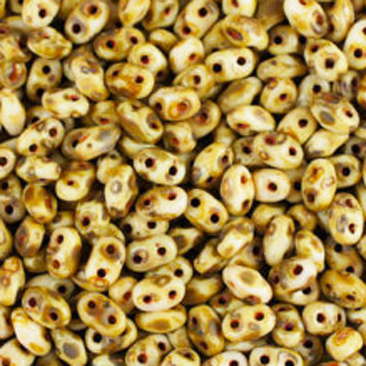 Seed Beads-2x4mm MiniDuo-243 Chalk Travertine Dark-Czech-7 Grams