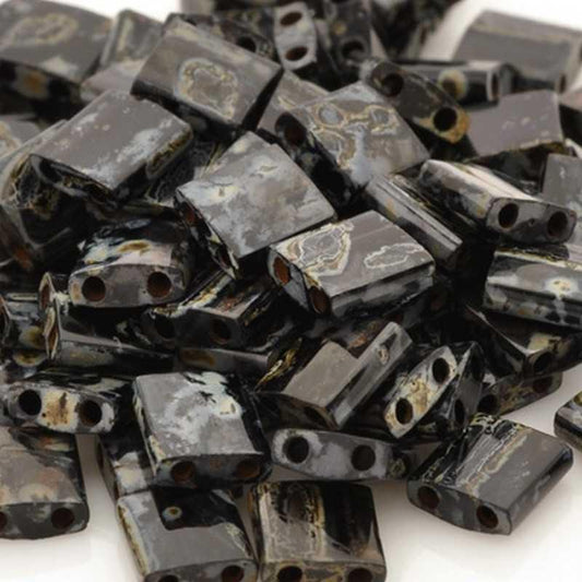 Seed Beads-5mm Tila-4511 Black Picasso-Miyuki-7 Grams