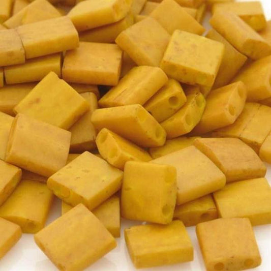 Seed Beads-5mm Tila-4519 Opaque Dark Yellow Picasso-Miyuki-7 Grams