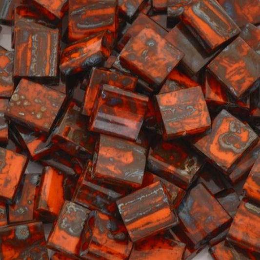 Seed Beads-5mm Tila-4521 Opaque Red Picasso-Miyuki-7 Grams