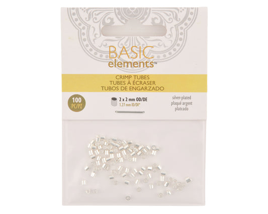 Beadsmith Silver Plated Crimp Tubes 2x2mm – 1.3mm Hole – 100 Pieces – Jewelry Making Findings