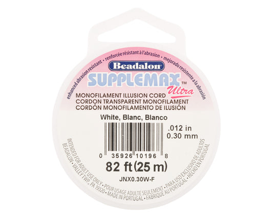 Supplemax Nylon Monofilament Beading Thread 0.30mm White – 25m Spool