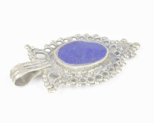 Vintage Pendants-Tribal Gypsy Glass Pendant-Antique Silver-Teal Green-No. 15-Quantity 1
