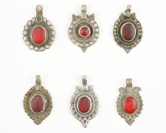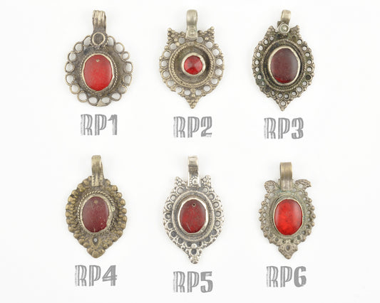 Vintage Pendants-Tribal Gypsy Glass Pendant-Antique Silver-Red-Choose Your Style-Quantity 1