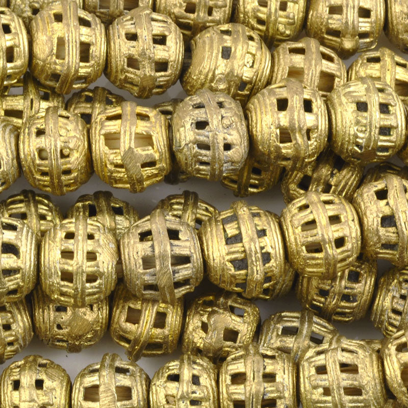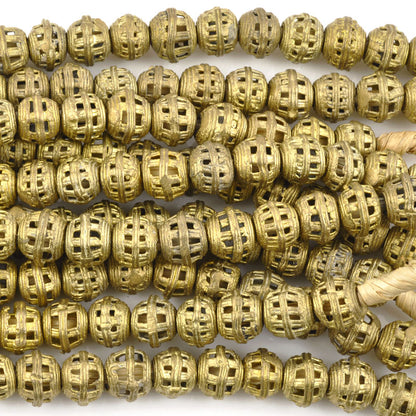 Brass Beads-13-17mm Striped Cage Round Filigree Globe Beads-Africa-Quantity 1