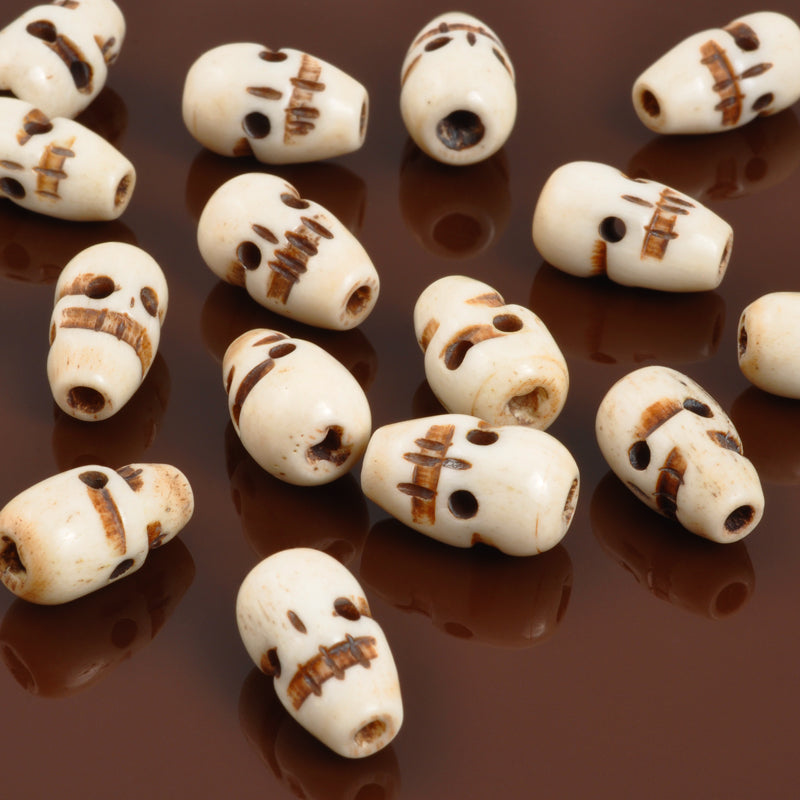 Carved Skull Bone Beads. As with all handmade items, beads will vary in color and may vary slightly in shape, adding to their one-of-a-kind qualities.