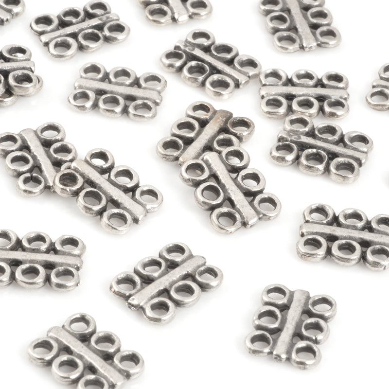 Hand-formed, Casting Beads are Lead-free Base Metal, Silver Plated with Black Patina.