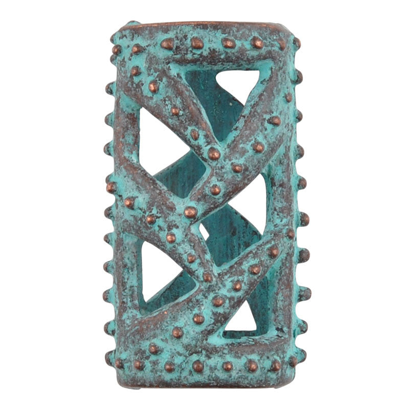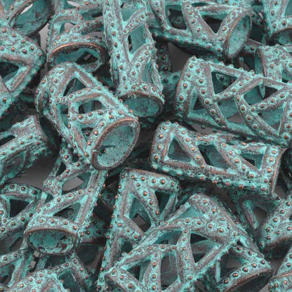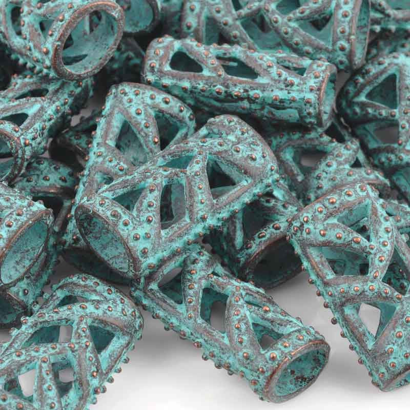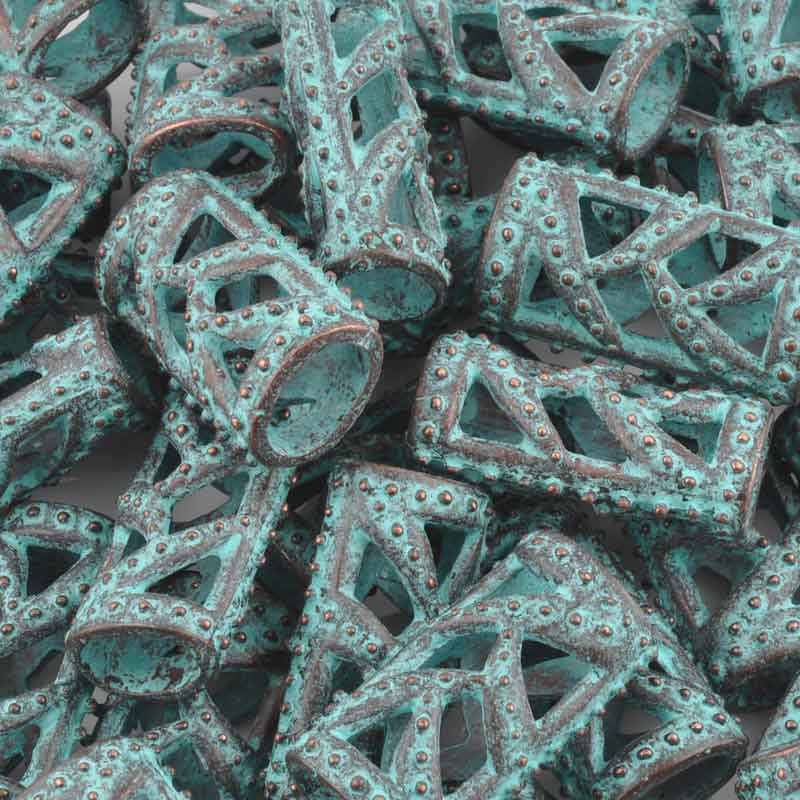 Hand-formed Casting Beads are Lead-free Base Metal Finished with Green Patina. (Patinas Vary)