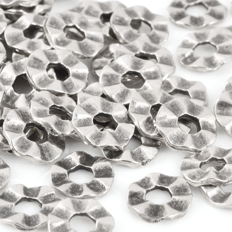 Hand-formed, Casting Beads are Lead-free Base Metal, Silver Plated with a Black Patina.