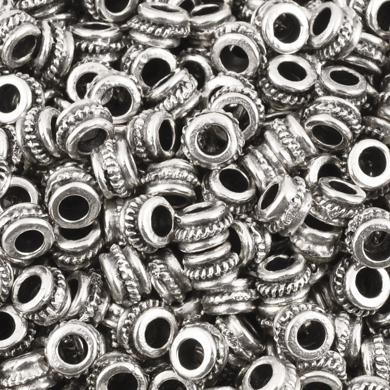 Hand-formed, Casting Beads are Lead-free Base Metal, Silver Plated with a Black Patina.