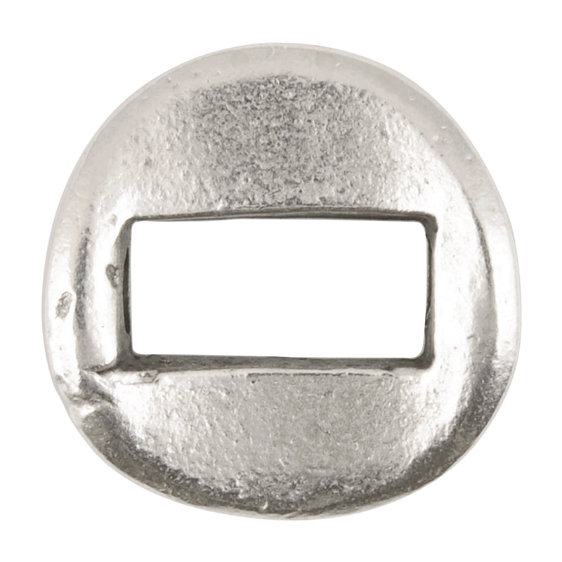 Hand-formed Casting Beads are Lead-free Base Metal, Silver Plated with a Black Patina.Shape/Style: Round Flat Pinch with Rectangle Cut-OutColor: Antique Silver Size: 15mmHole Size: 2mm (runs end to end through open rectangle) Bulk Quantity: 10All Sizes Approximate