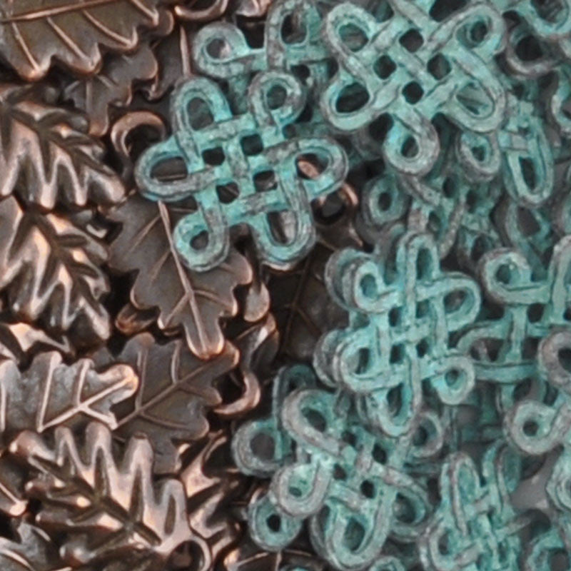 Hand-formed Casting Beads are Lead-free Base Metal Finished with Green Patina.