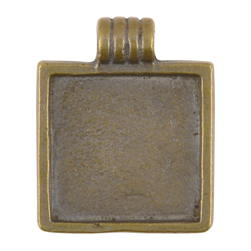 Hand-formed Casting Beads are Lead-free Base Metal, Bronze Plated with a Black Patina. Bezels are cast and will not always be a perfect fit to a particular size stone.Shape: Bezel Color: Antique BronzeSize: 23x29mm Hole Size: 2.8mmFrame Inset: 19mmBezel Depth: 1mmQuantity: 1All Sizes Approximate