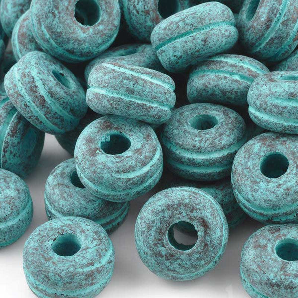 Quality Handmade Ceramic Kiln Fired Terra Cotta Beads Finished with Green Patina. (Patinas Vary)