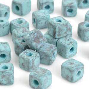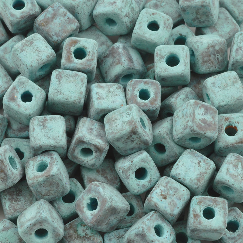 Quality Handmade Ceramic Kiln Fired Terra Cotta Beads Finished with Green Patina. (Patinas Vary)